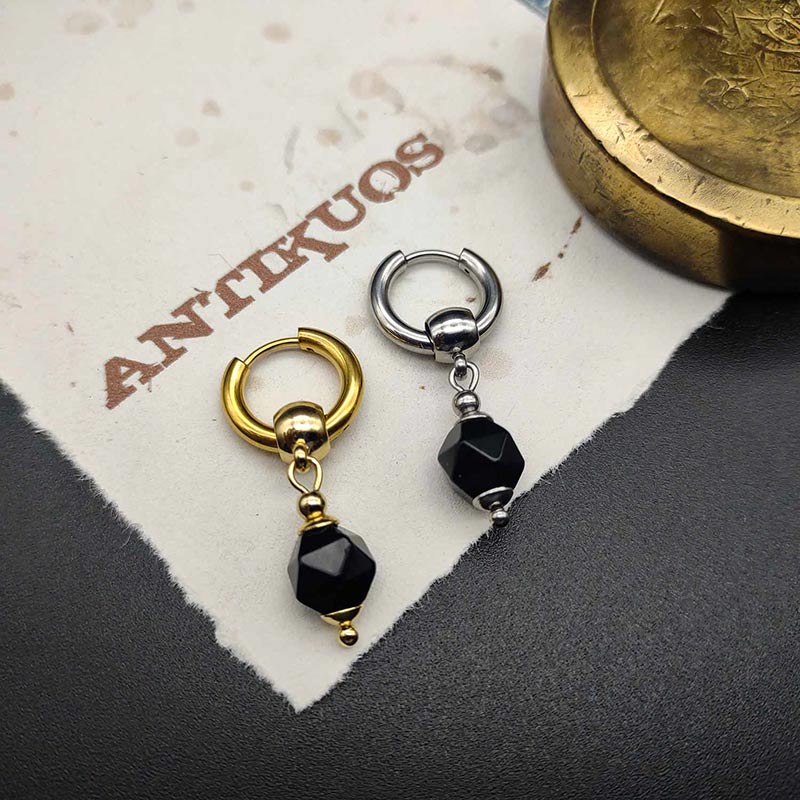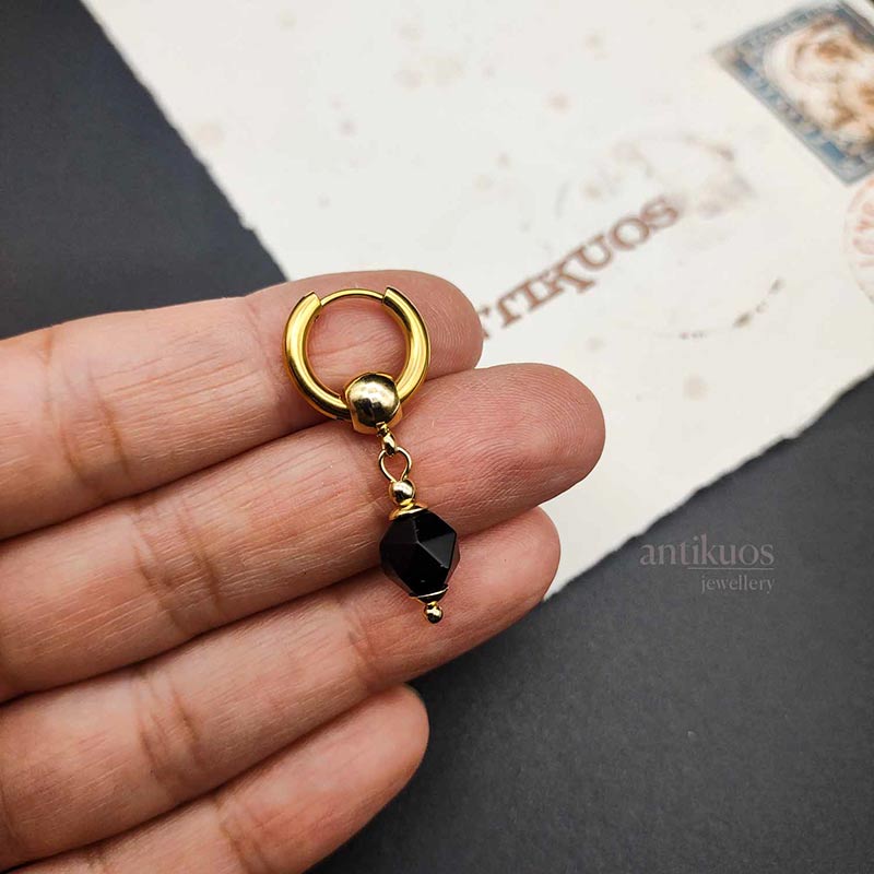A beautiful small black Onyx gemstone dangles from stainless steel hoop. Full stainless steel earring.