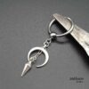 Detailed spear tip pendant on a stainless steel hoop and fancy bail.